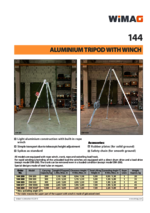 Light aluminium construction with built-in rope winch. All models are equipped with rope winch, crank, rope and swivelling load hook. For quick winding and unwinding of the unloaded rope, the winches are equipped with a direct gear and a load gear (except DW-200). The crank can also be removed under load (except DW-200). When supplied with rubber plates, the foot tips are omitted. Special versions made of steel tube on request.