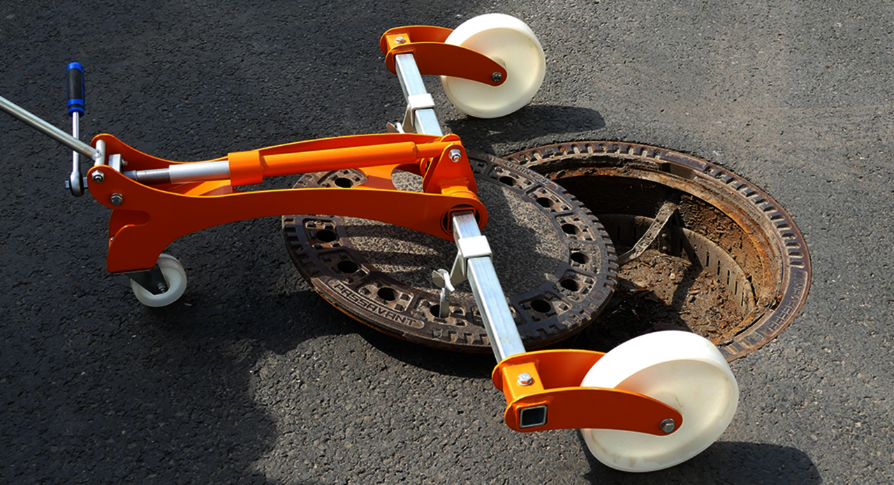 The manhole cover lifter from WIMAG puts an end to back injuries. It is operated with ratchet and spindle to save effort.