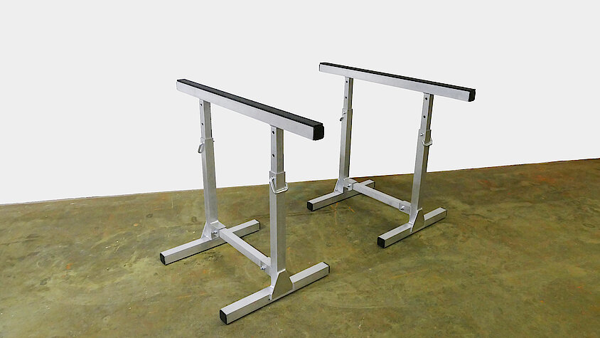 La construction est faite de profilés en aluminium et est facile à démonter et à assembler. Son faible poids permet une manipulation aisée. La hauteur peut être facilement réglée par des boulons. La surface d'appui est équipée en standard d'un revêtement antidérapant.